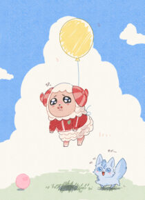 屋台で買った風船をつけたら浮いてしまったちゃちゃ丸氏と狼わんわんのリーヤ(赤ずきんチャチャ)