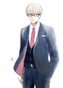お題に合わせて練習がてら、スーツメガネの男性。